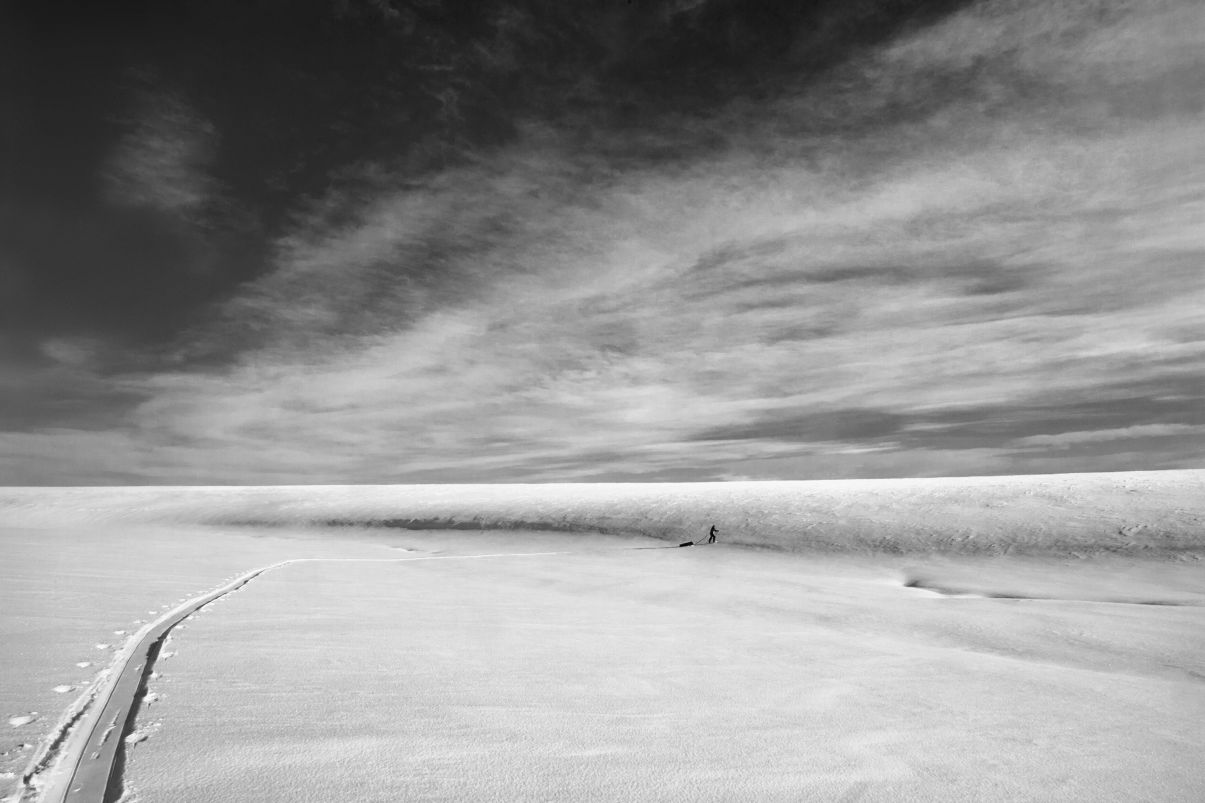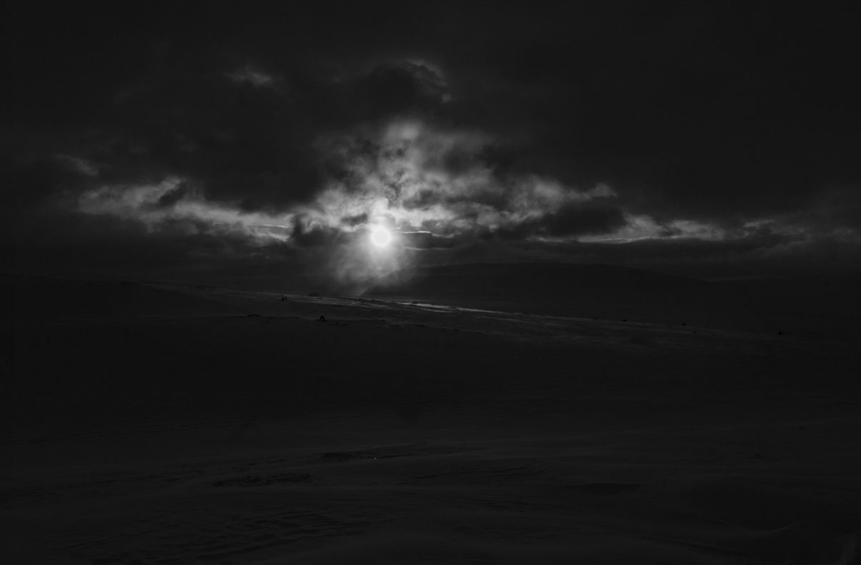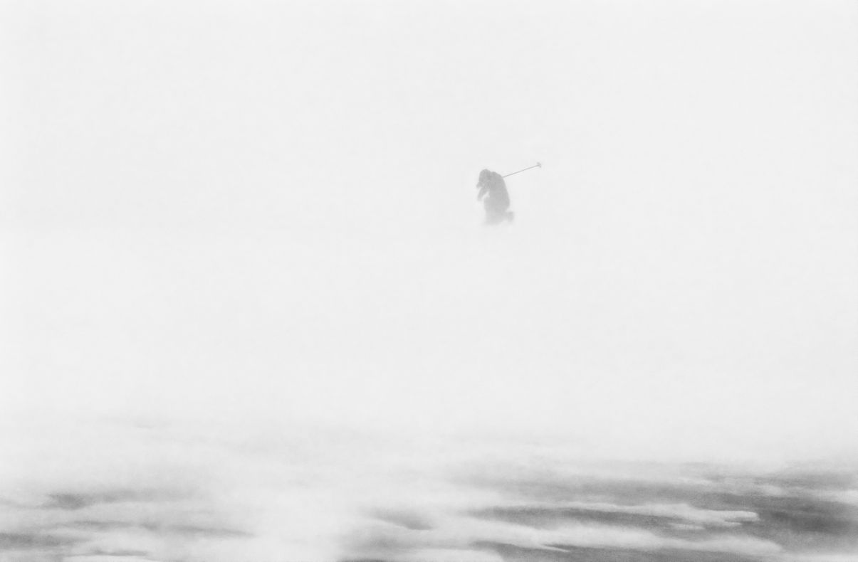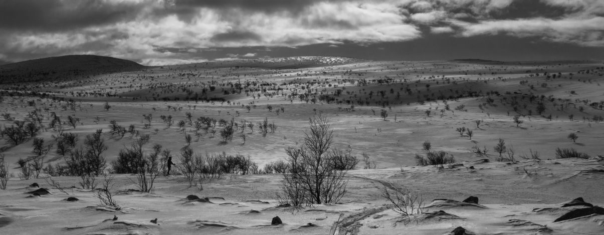 "Illansuussa taivaankansi alkoi taas rakoilla. Kirkkaat säteet osuvat rinteen muotoihin. Taivaalta katsottuna olin musta piste, joka piirsi perässään janaa, kuin hyvä kynä valkoiselle paperille. Onnelliset ajatukset täyttivät pään. Alkoi tuulla uudelleen. Hiljaisuus liikkui tuulessa."